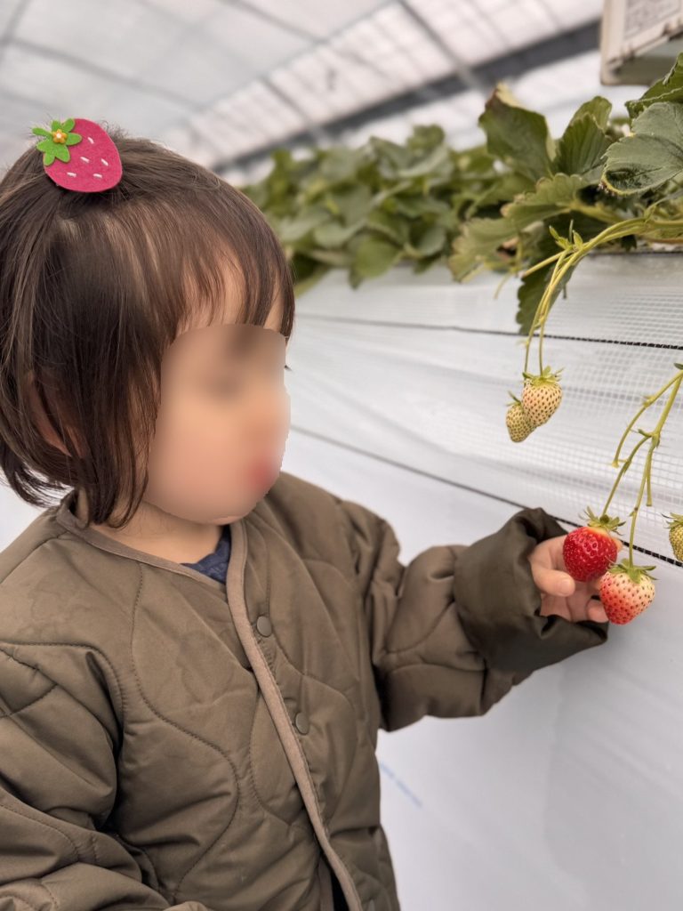 その後、粟島神社から車で2分ほどの所にある「じろべえの観光農園」にていちご狩りを行いました。