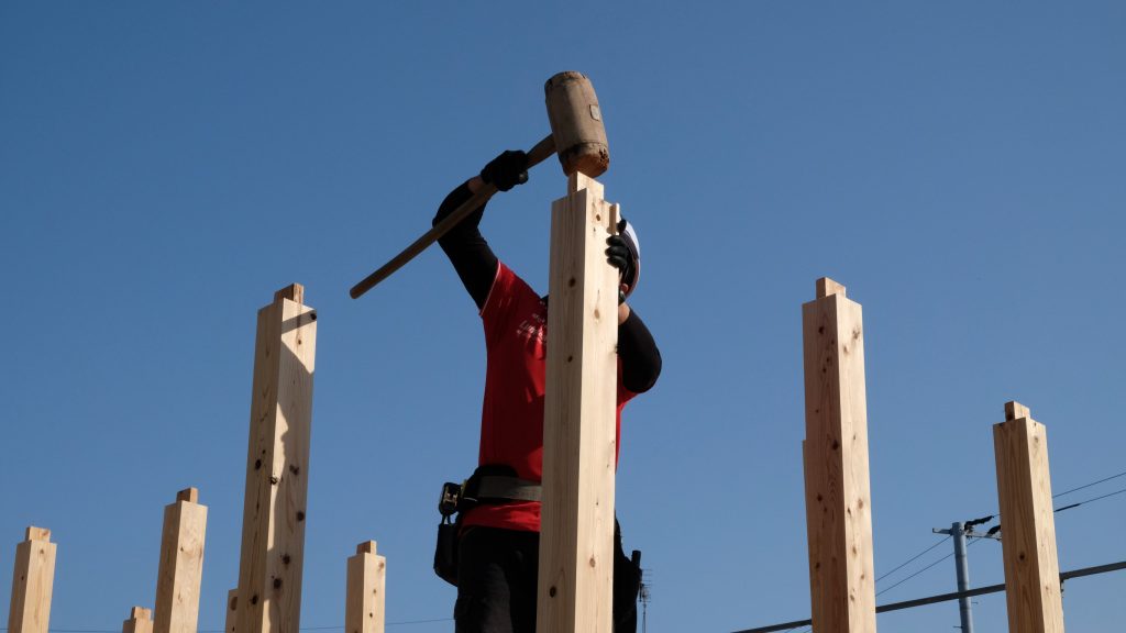 大工さん達が建てていく様を観察します。(‘◇’)ゞ