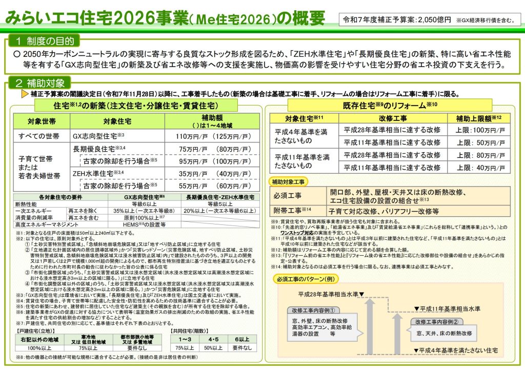 新しい補助事業の名前は「みらいエコ住宅2026」です。