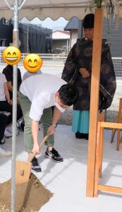 双方のご両親とご兄弟家族も来て頂き、非常に賑やかな地鎮祭となりました!!