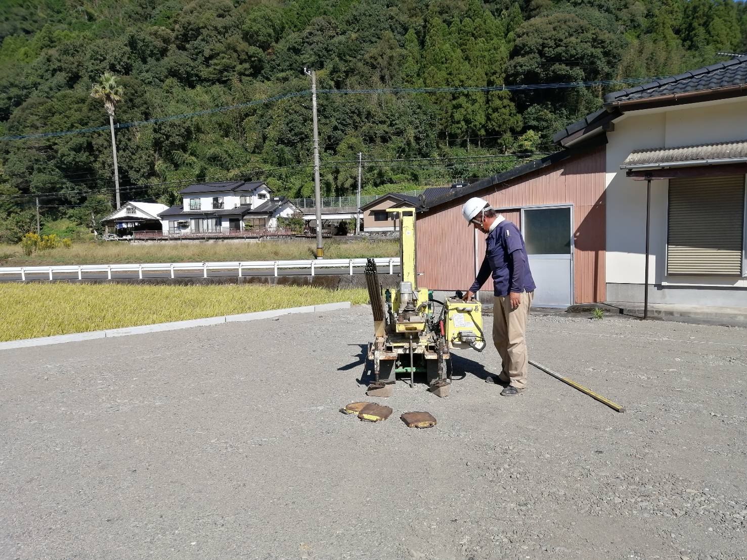 辺りを見回すと、ちょうど「地盤調査」を行っている最中でした(‘◇’)ゞ